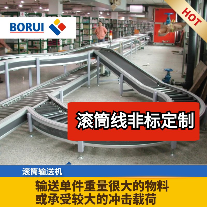 2.结构形式多样,滚筒式输送机按驱动方式可分为动力滚筒线和无动力滚筒线,按布置形式可分为水平输送滚筒线、倾斜输送滚筒线和转弯输送滚筒线。还可按客户真正的需求特殊设计,以满足各类客户的各种要求。